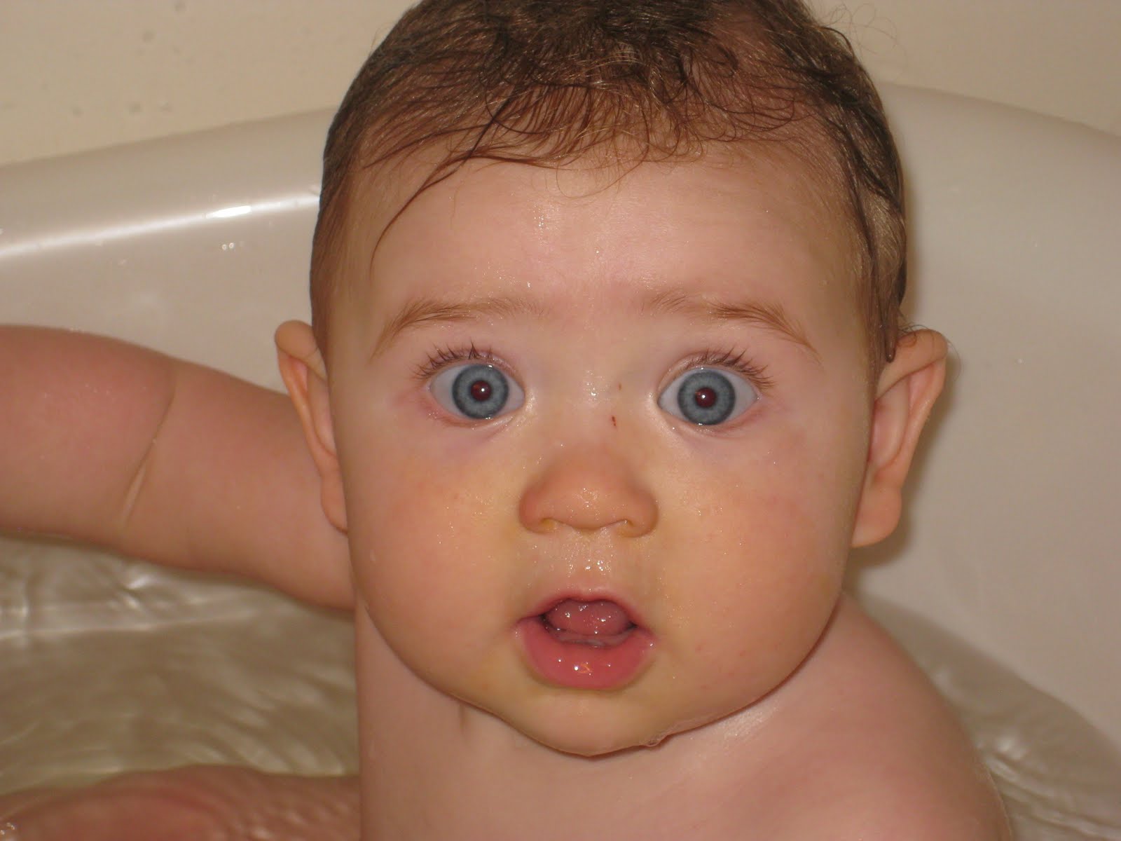 Walgreens making everyone laugh, and after eating sweet potatoes where she spits out orange food... it makes me laugh!